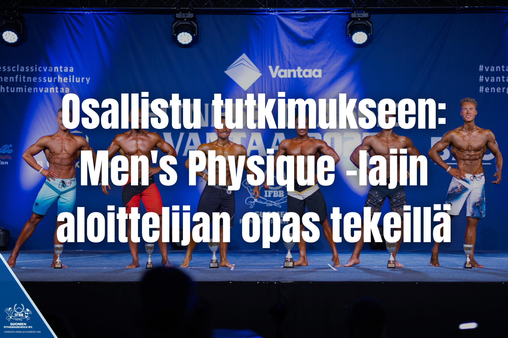 Haaga-Helian ammattikorkeakoulun opiskelija tekee opinnäytetyötä, jonka tavoitteena on tuottaa opas aloitteleville Men's Physique -kilpailijoille. Suomen Fitnessurheilu ry kannustaa jäsenistöään vastaamaan kyselyyn, sillä laadukas tutkimustieto ja ohjeistus tukevat lajin kasvua ja madaltavat kilpailemisen kynnystä.